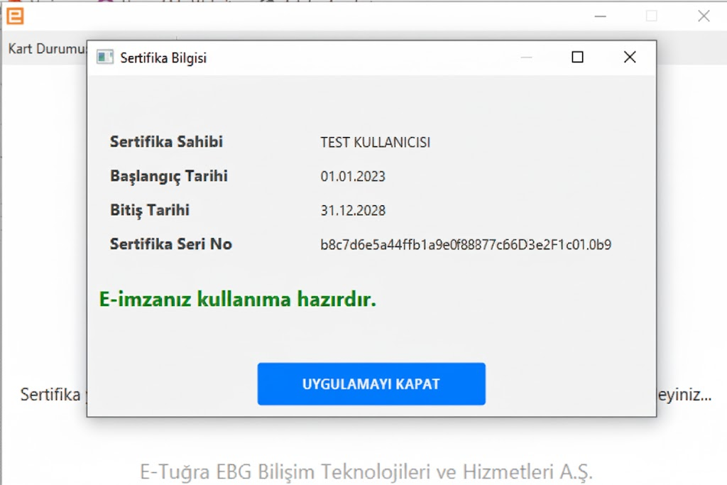 Sertifika Bilgileri ekranı gelince aktivasyon tamamlanacaktır.