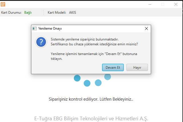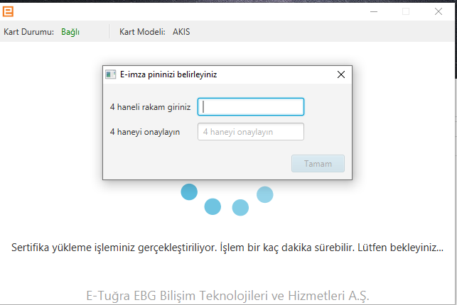 Sertifika aktivasyonu tamamlarken bekleyiniz ve ekranı kapatmayınız