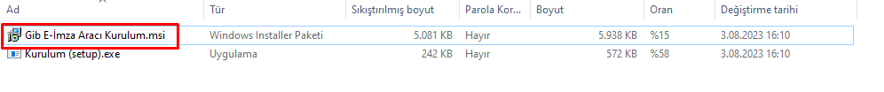 adresinden Gelir İdaresi E-imza Aracı uygulamasını indirin. İnen GibeImzaAraciKurulum.zip dosyasını çalıştırın.